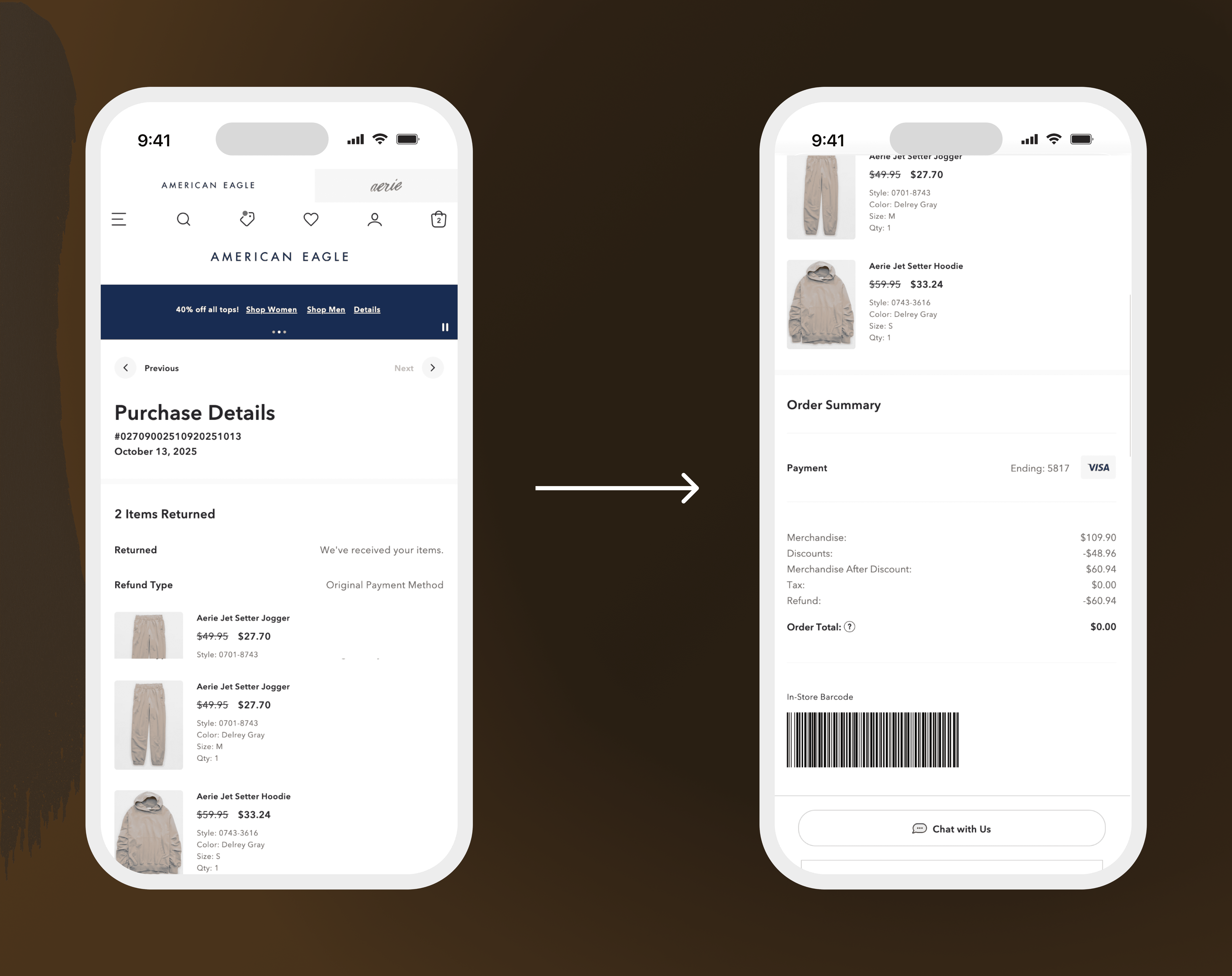 Customers had no way to view in-store purchases in their account. Returns required paper receipts. Exchanges involved store associates manually looking up transactions. No consistent digital record existed.