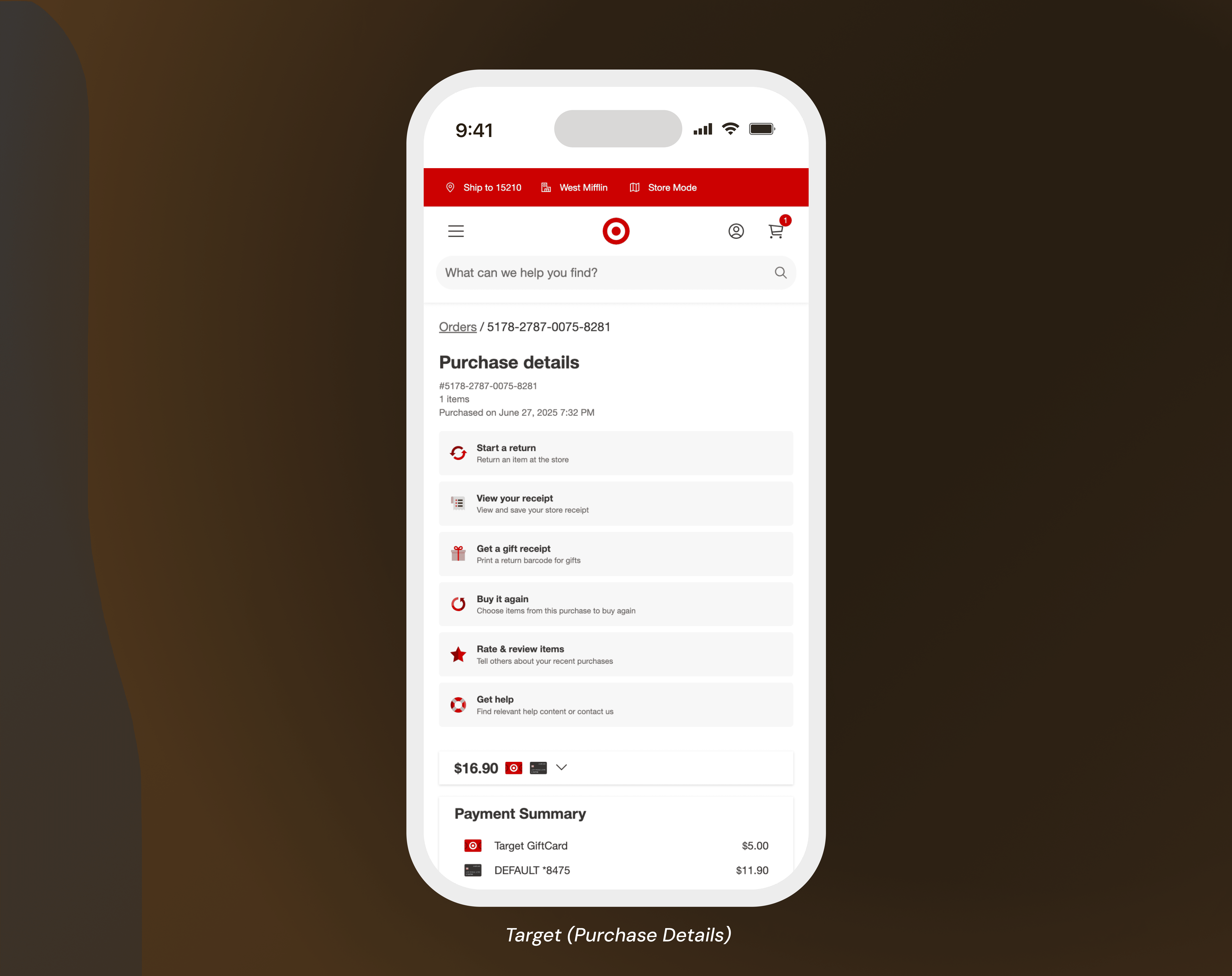 I analyzed how other retailers surface store purchase history, focusing on information hierarchy, differences between online and in-store order details, and how navigation between order types was handled.